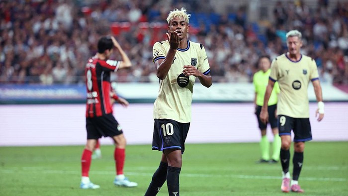 10 gol terjadi saat Barcelona menghadapi FC Seoul pada laga pramusim di Seoul World Cup Stadium, Korea Selatan, Kamis (31/7/2025) malam WIB. El Barca menang 7-3 pada laga ini.