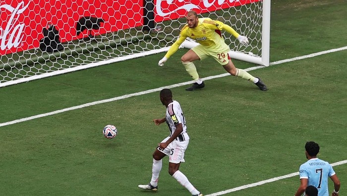 Bek Juventus , Pierre Kalulu , membobol gawang sendiri saat menghadapi Manchester City di Piala Dunia Antarklub 2025 . Own goal yang dibuatnya amat konyol.