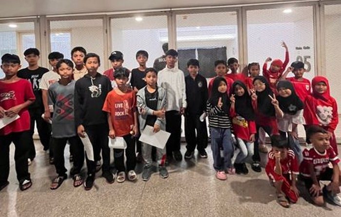 Lebih dari 100 anak mengisi bangku penonton bersorak dan menyemangati Garuda Muda. Mereka begitu Bahagia bisa menyaksikan langsung Dony Tri Pamungkas cs yang begitu lihai menggiring bola.